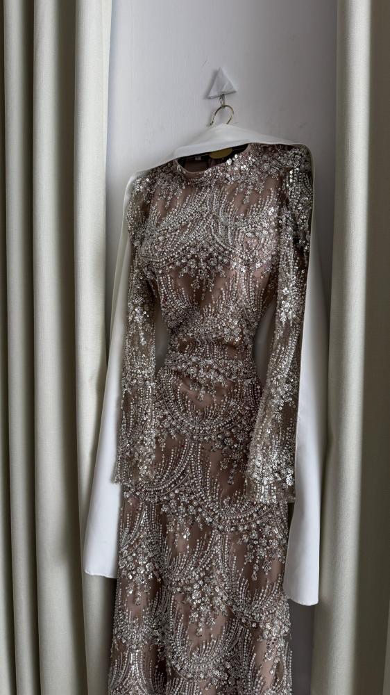 فستان يبرق ويرعد فخم بتصميمه الراقي مايضيف لمسة ابداع مطرز بخرز