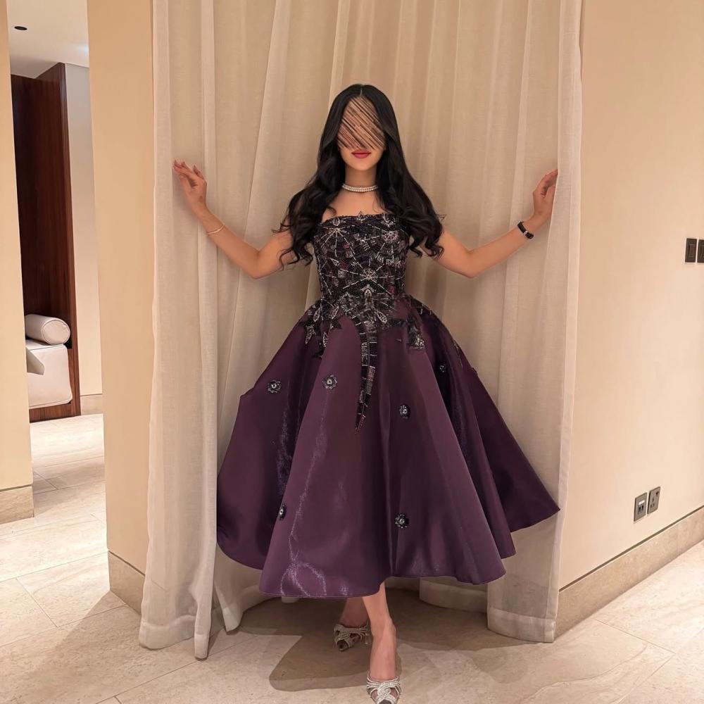 • مصنوع من قماش ساتان فاخر أو تفتة بلمعة خفيفة تمنح الفستان طابعًا ناعمًا وفخمًا في الوقت نفسه، مما يجعله مثاليًا للمناسبات الراقية