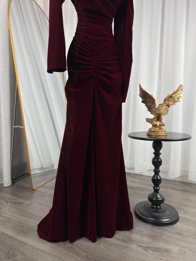 مواصفات فستان عنابي طويل :